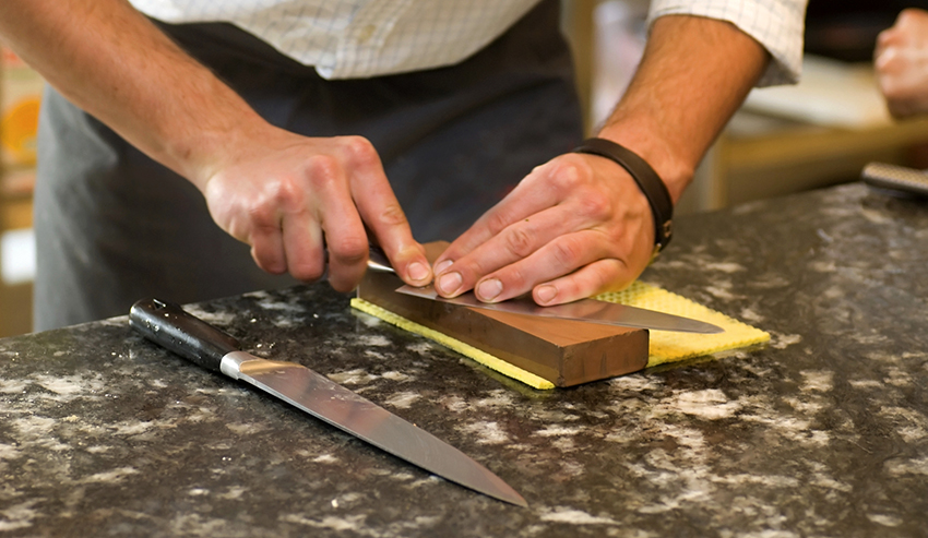 When cutting animal carcasses, knives can become dull very quickly due to the presence of tendons and bones