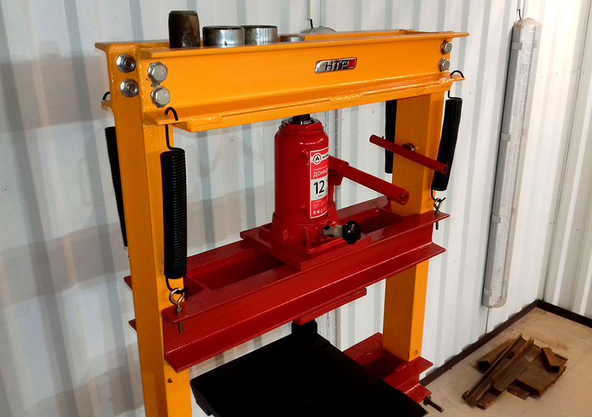 The device is often used in auto repair shops for bending and compressing materials, pressing and pressing out bearings, when performing overhaul of gearboxes, suspensions, and the power plant of a car. No significant effort is required to use the device.