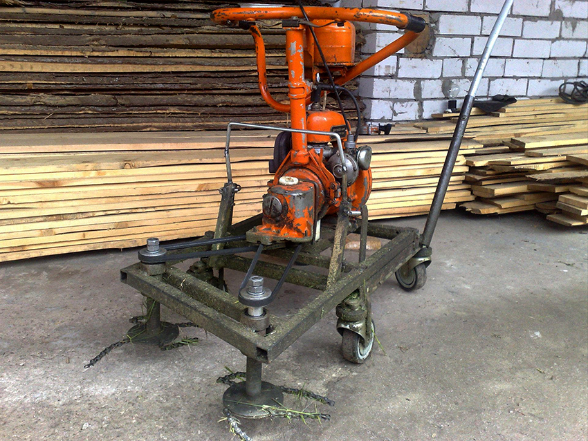 A chainsaw motor is also perfect for creating a motor-cultivator designed for plowing virgin lands (for light soils). To work with dense and wet soils, the power and torque of the engine are most likely not enough, but to loosen the surface layer and remove the roots of the weeds remaining in the ground, the cultivator from the chainsaw will be enough.The main part of the device is a rotating milling cutter, due to which the equipment moves around the site.