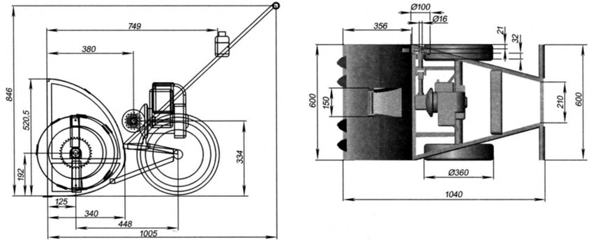 A simpler option is a snowmobile, which has a similar method of use, but is a propeller driven aircraft moving in the snow. Due to the simplified design, the sleds do not differ in high carrying capacity, passability and stability. The main advantages are simple design and ease of manufacture. The rotating screw, installed behind the driver's back, must be closed with a protective cover made of fine mesh. The control is carried out by turning the skis, throttle and brake. The optimal engine power is considered to be 5-6 horsepower.