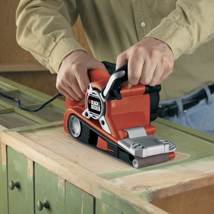 The sanding element in this equipment is represented by a tape that is attached around two rollers. Their movement allows the belt, which is attached to the sole, to rotate at the required speed. A rather important characteristic of the work of a sander on wood is speed. It depends entirely on the power of the tool. This figure can vary from 500 to 1200 watts. There are models that are additionally equipped with a speed regulator that allows you to select the optimal level depending on the surface to be treated.