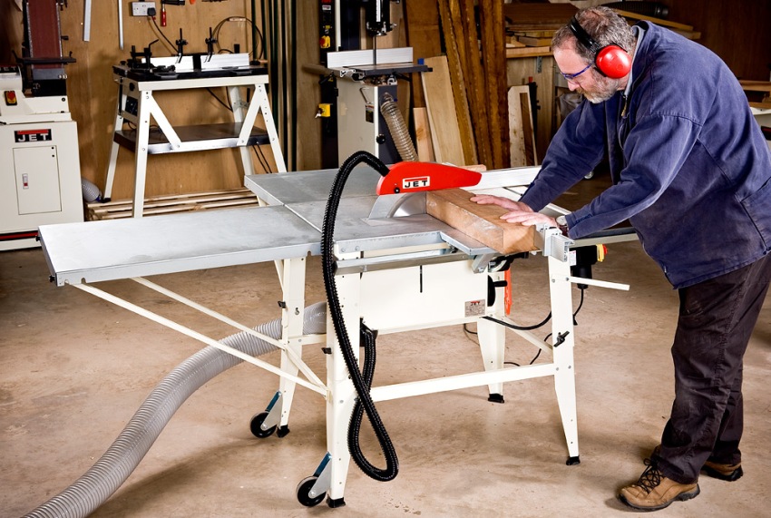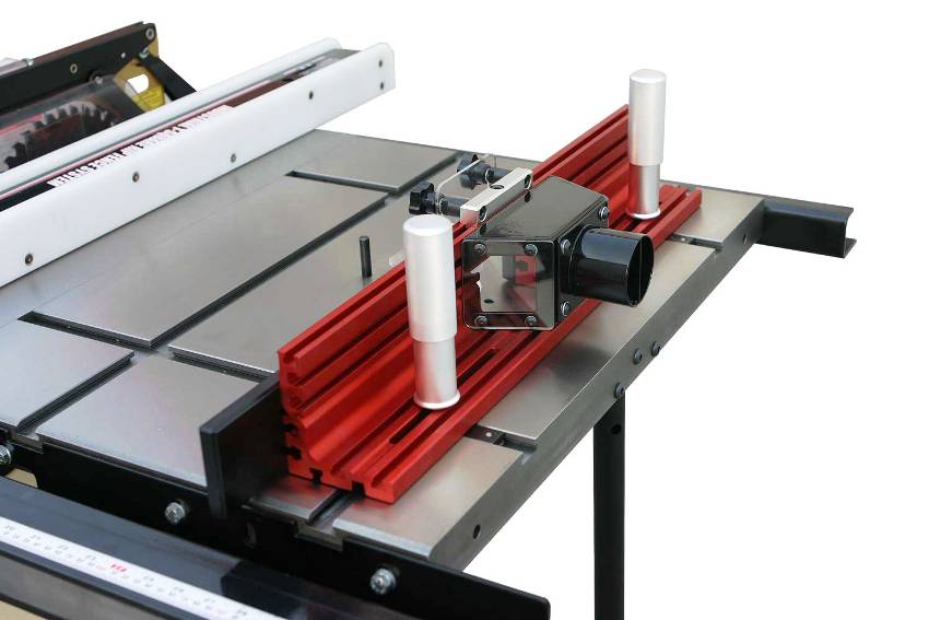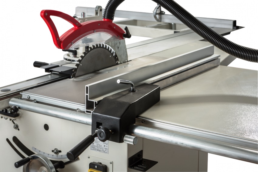 The working surface can be equipped with expanding elements, thanks to which the area of the machine can be increased. The stationary saw is controlled using buttons that are recessed into the control panel. This prevents accidental starting of the unit. Some models are equipped with an emergency switch.