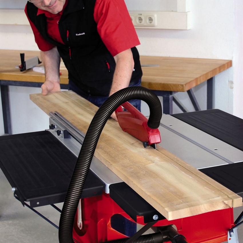 The circular saw with a table can handle workpieces longer than 1 m. This tool also features a wide range of materials to be processed. The saw can handle wood, chipboard, fiberboard, plywood, plastic and even soft alloy products. For the latter type of material, you will need to use the appropriate disc.