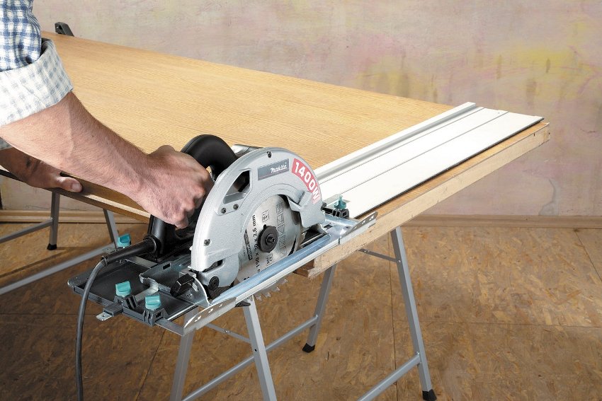 To perform correct and accurate processing of the workpiece, an additional attachment for the circular saw in the form of a bar is used. This guide ensures efficient, easy and safe operation of the device. With the help of the tire, you can carry out longitudinal and cross cuts, adjust the parameters of the workpiece to be processed, and make facing of several elements.