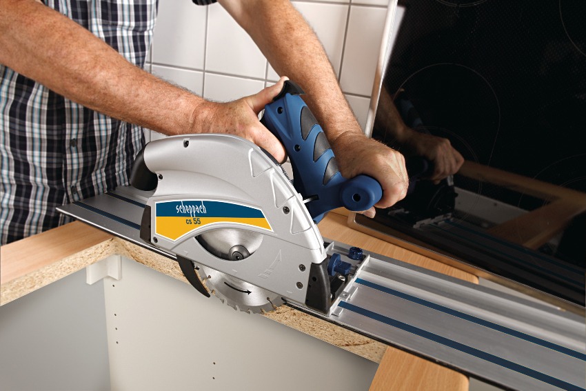 The plunge-cut circular saw has a movable saw blade. The cutting edge of the tool is lowered into the center of the workpiece, starting the cut from this point, making through holes.