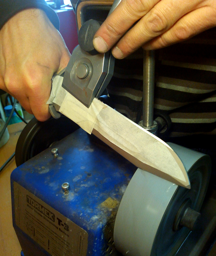 - Initial processing or regrinding. The sharpening angle changes, and gross mechanical damage to the base is eliminated. When using a tool for sharpening knives, a significant layer of steel is removed at this stage - until a perfectly flat point is obtained, a coarse-grained abrasive is suitable for this.