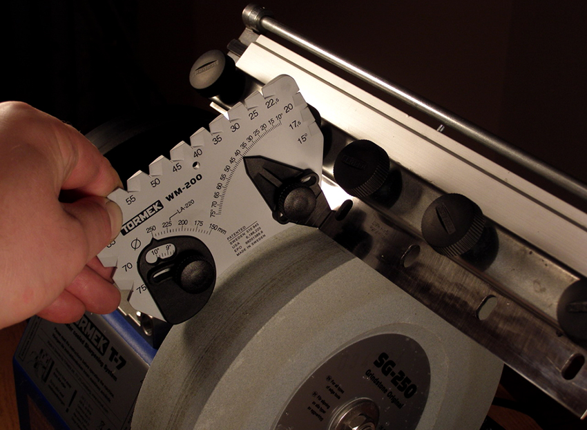 A feature of such a device for sharpening knives with your own hands is the fact that the triangles are fixed in only one position, but the angle of inclination of the sharpening stone can be changed. For a more accurate setting of the correct angle, it is recommended to use a regular protractor.