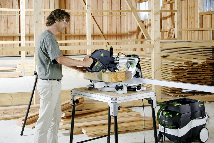 The tool generates large amounts of wood dust and sawdust. In order to exclude their spread throughout the room, some models are equipped with a nozzle for connecting a vacuum cleaner, through which debris is removed directly from the place of its formation. In modern models, the table top is expanded by 50 cm or more, which allows you to work with long products such as laminate.