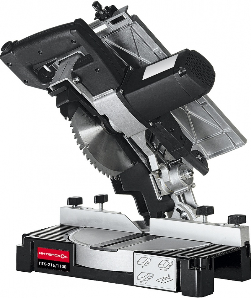 Interskol PTK-216/1100 P miter saw model is capable of performing complex cuts at an angle of up to 45 degrees. round trip