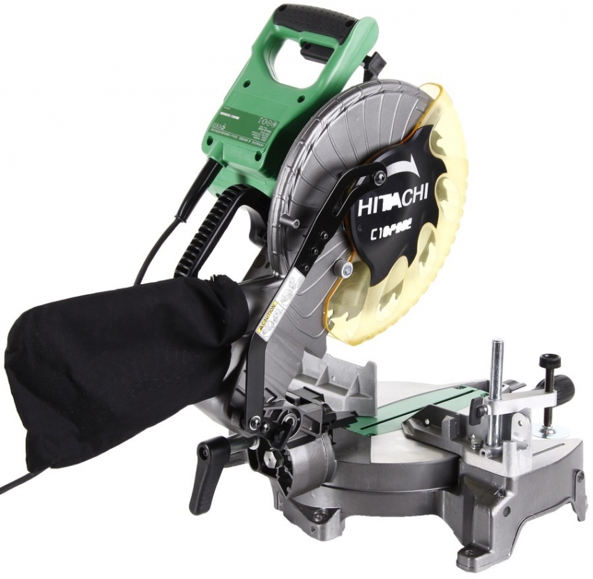 Miter saws from the Chinese manufacturer Hitachi are distinguished by high accuracy of cross-cutting wood products at a given angle up to 45-47 degrees. The tool is widely used in the production of window frames, installation of platbands and baseboards.