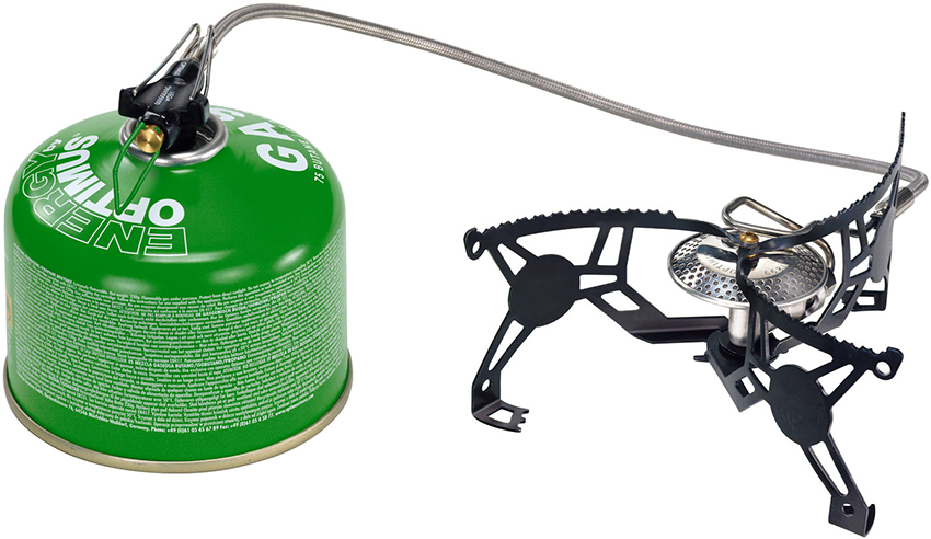 In this case, a flexible hose is used to connect the tourist gas burner to the cylinder. Such designs not only efficiently consume fuel in bad weather conditions, but also allow the use of heavy, roomy dishes. There are additional benefits to having a flexible hose. The gas cylinder can be manually heated by placing it in a bowl of warm water or by placing it in a sleeping bag if cooking is done in the tent vestibule.