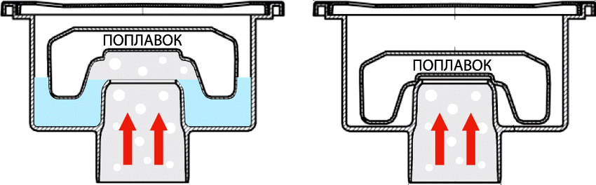 Float models work on the principle of a flush tank. The design is an inverted lightweight glass, the edges of which are immersed in water. The lightweight float is positioned on the water surface. After draining it, sinking, it blocks the drain. In some models, instead of a float, a light ball is installed, which, after the liquid has flowed out, falls into the outer seat, ensuring a tight closure of the drain hole. This option can be made independently when arranging sewer wiring in a bath.