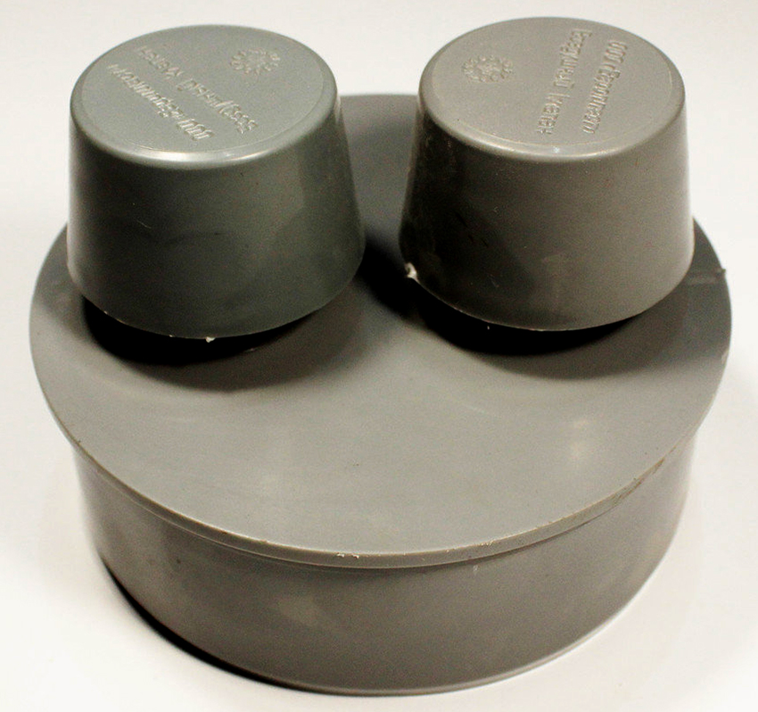The air valve is installed in the socket joint. For one drain point, a device with a diameter of 50 mm is used, and for a common riser, a 110 mm vacuum valve for sewage is mounted.