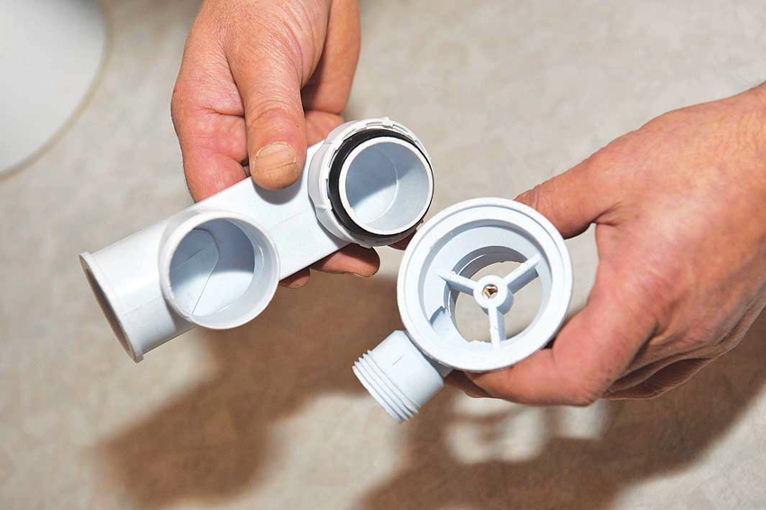 Before buying a shutter, you should also pay attention to the quality of the material of manufacture. The drainage fittings are located under the sump, therefore they experience minimal loads. Products fail as a result of natural aging of the plastic. Siphons made of high-quality plastic are characterized by strong intermolecular bonds, and low-quality cheap products are characterized by fragility and fragility. The duration of the product's life is also influenced by the number of components. The more there are, the lower the reliability of the device. The drain fittings should be easily and quickly disassembled and assembled by hand. Installation of the device should be carried out using the minimum set of tools.