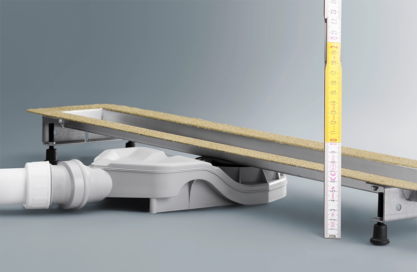 The dry seal is compact and can be used under the lowest pallets. This feature saves space and greatly simplifies the installation of the product. This is the most relevant option when arranging a drain for a shower cabin without a pallet.