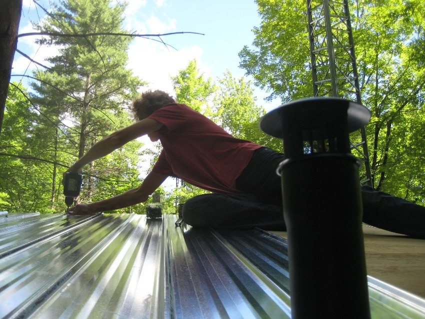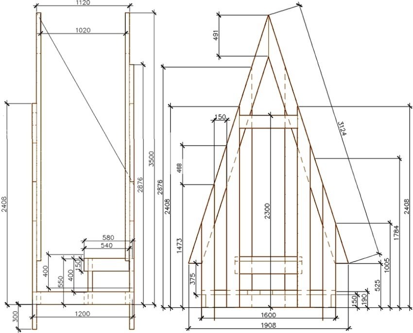- roof organization. With the help of boards, the length of which must be at least 1.8 m, the roof for the "Shalash" is made. To do this, the material should be resting on the back and front of the structure and fixed with fasteners on wooden slats. The result is a roof;