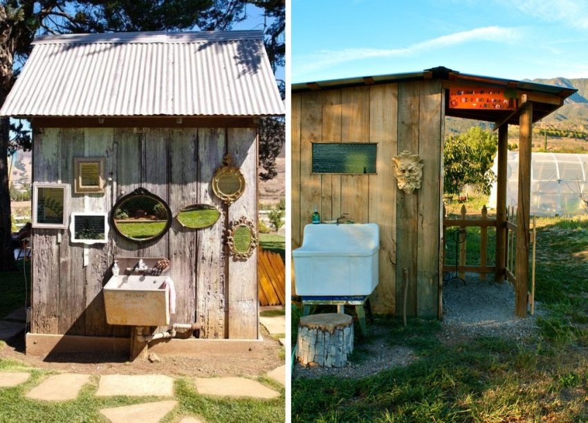 Examples of toilets made of wood, built by hand