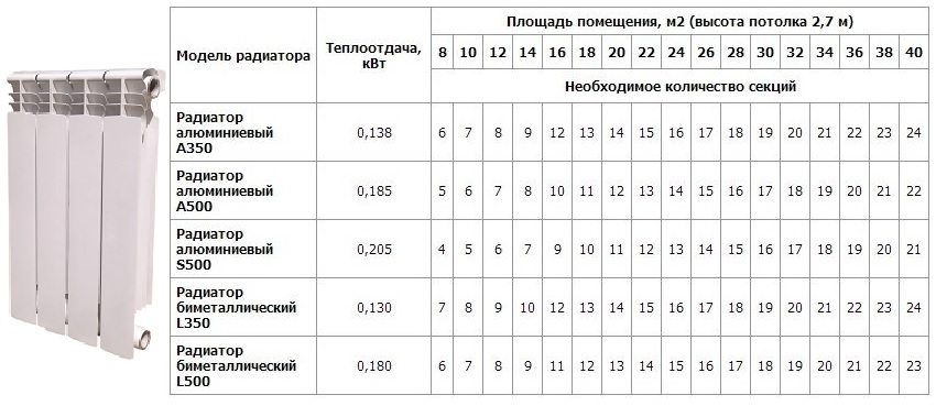 Calculation of the number of required sections for aluminum and bimetallic radiators, depending on the heated area