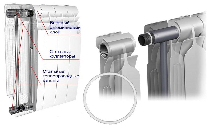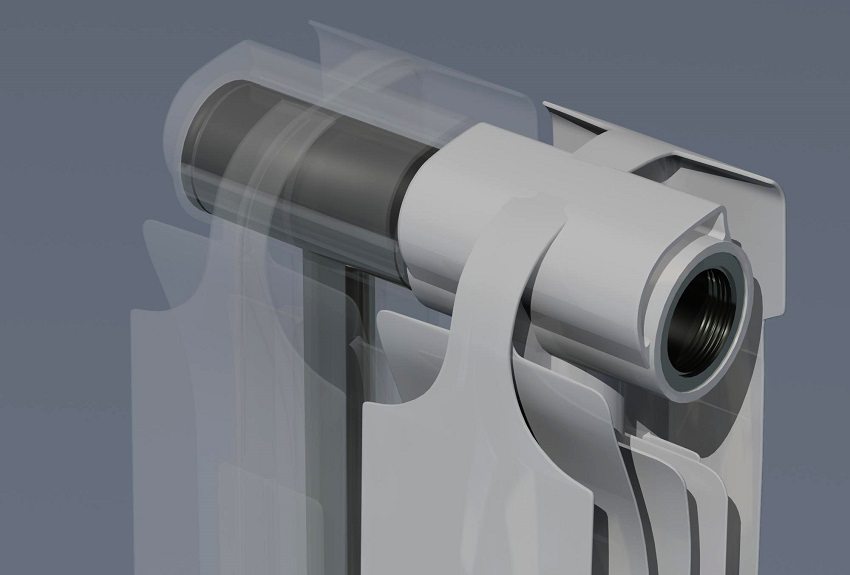With high-quality manufacturing, the design of bimetallic radiators is integral and practically invulnerable to leaks. In fact, this is a kind of aluminum radiator, only with its own additional advantages. The combination of steel and aluminum makes the radiator a good and effective medium for transferring heat to the surrounding area. Compared to an aluminum radiator, a bimetallic one can withstand more than twice the internal atmospheric load, which indicates its strength.