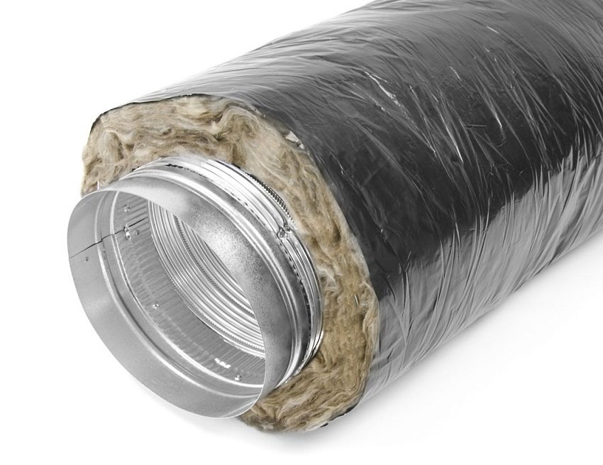 Roll materials are used to insulate round air ducts: isolon, isover. These materials have good soundproofing properties and fire safety. For insulation, you can also use mineral wool by wrapping the duct in two layers.