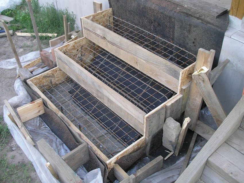 You can immediately prepare a complete formwork for each step - this way, less time will be spent on work. But it will be much easier and more reliable to pour concrete on the steps in turn and let the solution set in the previous one before the device of the next step.