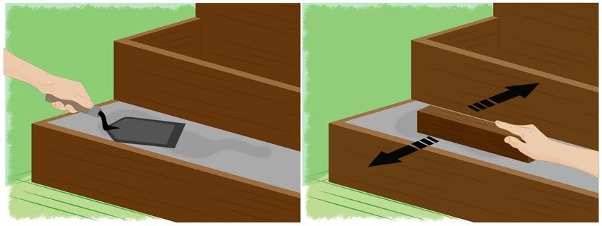 When cutting out the ribs for steps, a square is a must. A gap between the teeth in parallel strings, even 5-7 mm, will provide a slight subsidence of the step in one place and swelling in another. Temperature changes will only increase the level difference of the step.