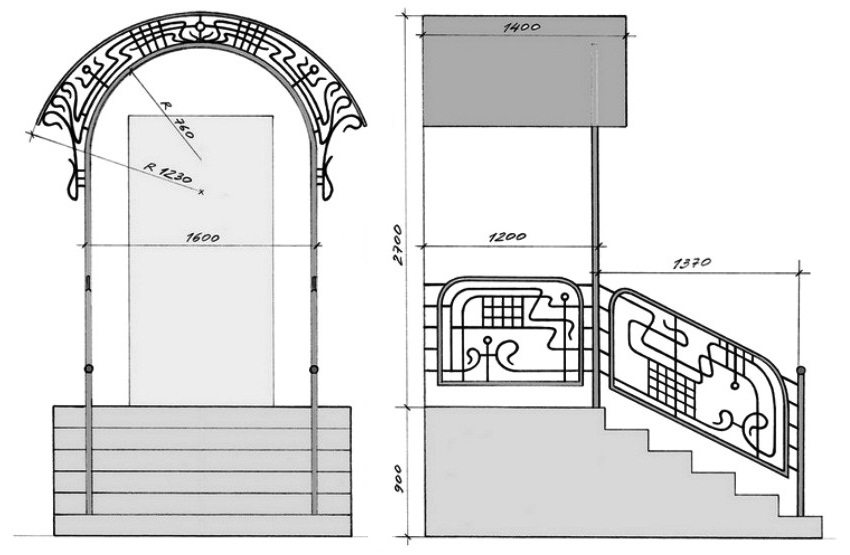 The advantages of a metal porch are that it can be mounted literally in hours with the ability to work with electric welding. In addition, metal construction will be relatively cheap if no forged elements are used. Minus - everything will have to be assembled from standard elements. But if you want a truly beautiful and stylish metal porch, then forged elements will have to be ordered and wait at least 2-4 weeks, depending on the volume of the order, despite the fact that forging is not cheap.