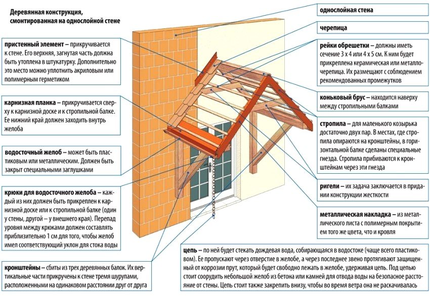The area of the visor must exceed the area of the porch by at least half a meter, otherwise the visor will not fulfill its main protective function.