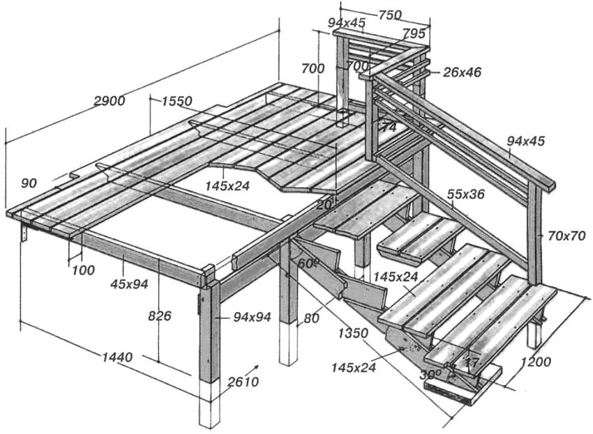 This approach will ensure the strength and durability of the structure of a do-it-yourself porch for a wooden house (photos and drawings in magazines and construction manuals prove this), even if the staircase is used very actively, with a large weight load.