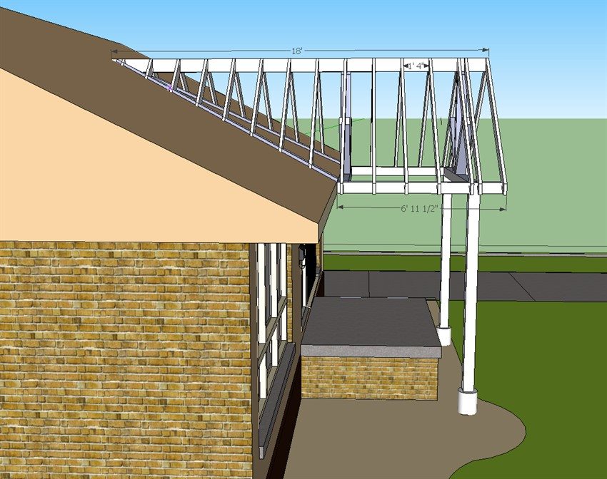 In the description of pouring the foundation, it was mentioned that the piles for the canopy can be easily installed even in the process of forming the base. It's best to put a visor on them. In addition, this will make it possible in the future to make a closed glazed veranda in just a couple of days.