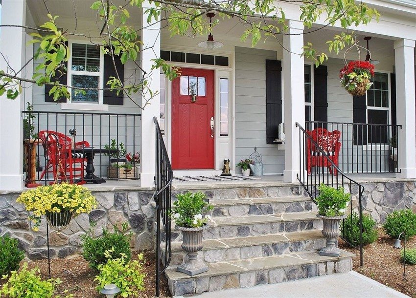 Since the floor in the house is always raised to the level of the foundation, a series of steps is an obligatory element of the porch.