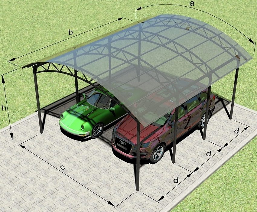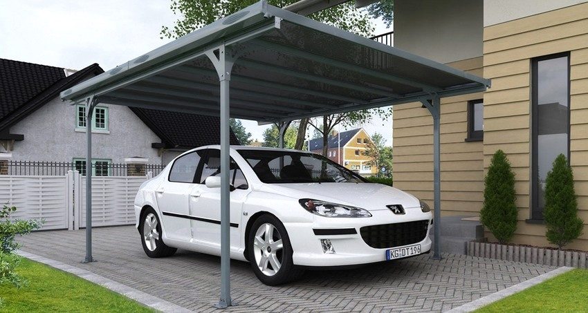 The area of many household plots does not allow placing a garage for a car on them, and if it is being built, then you have to sacrifice part of the garden or vegetable garden. In addition, the construction of a garage is associated with considerable financial costs. A worthy alternative can be canopywhich occupies a small area and looks light and almost invisible.