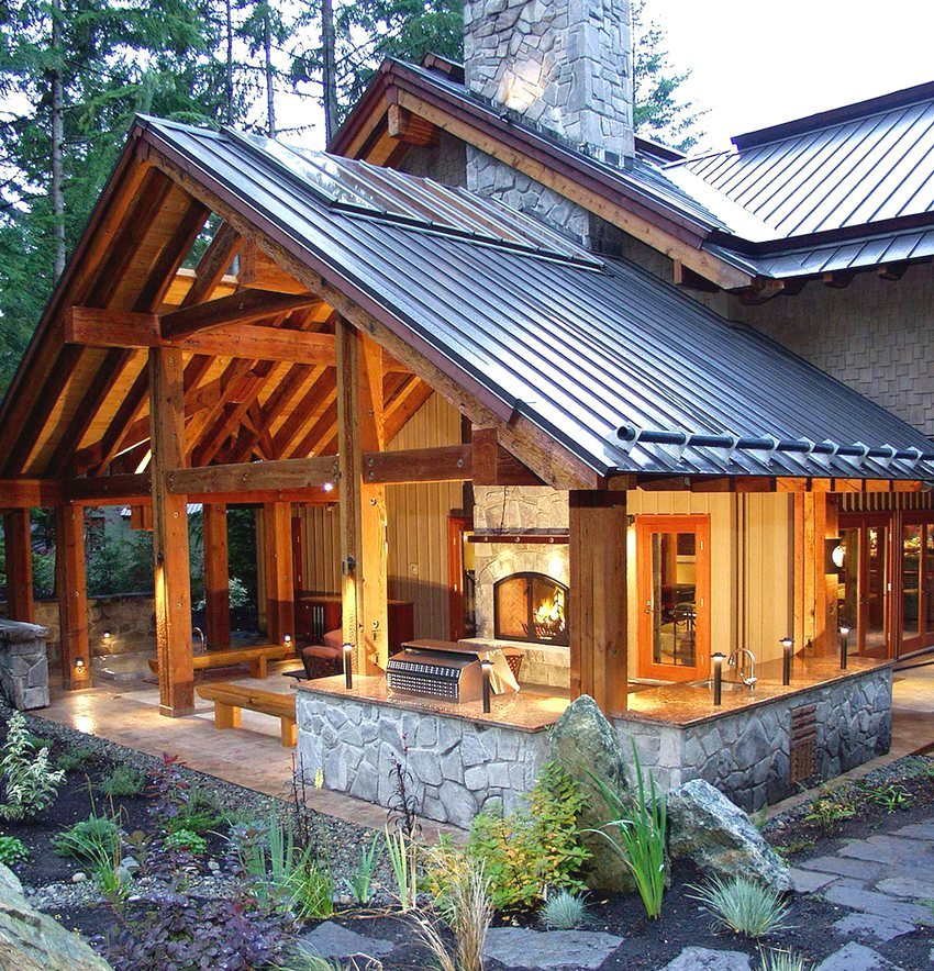 The frame is also made of wood and metal profile... It is much easier to make a canopy out of wood on your own, taking into account the malleability of processing this material, but such a structure will not differ in durability. When equipping your site with a canopy, stick to the same style with other buildings. If in the design of the site adjacent to the house there are forged objects (fencing, goal), you can support the composition by including forging elements in the canopy frame.