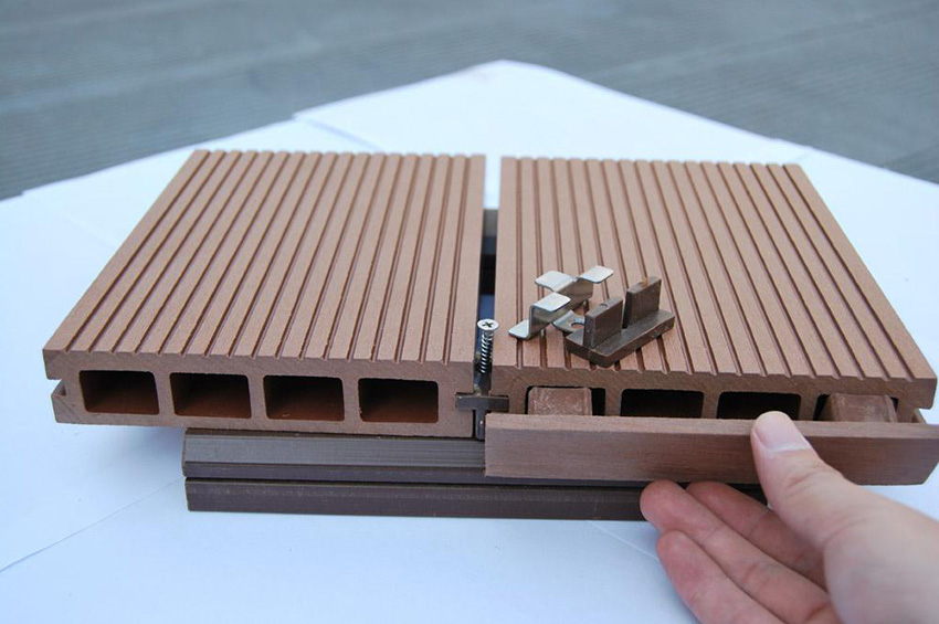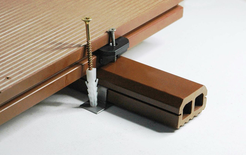 With a hidden type of installation, preference is given to secret fastening elements. Usually manufacturers provide them to customers along with the boards. This means that the price of a plastic decking board will not increase because of this.