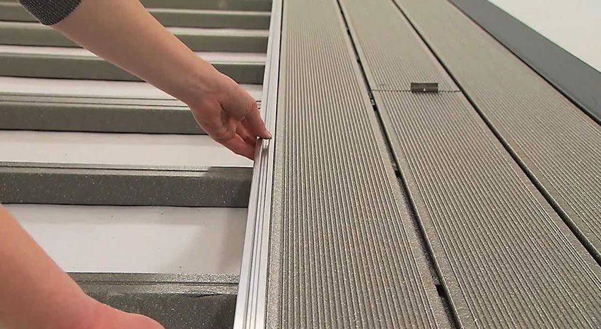 Before starting the installation, it is very important to understand the features of the WPC, what it is and how to use its strengths. This type of boards needs additional framing with the help of end elements. Special abutment strips should be installed between the deck and the wall of the structure. There are also various profiles and an edging strip.