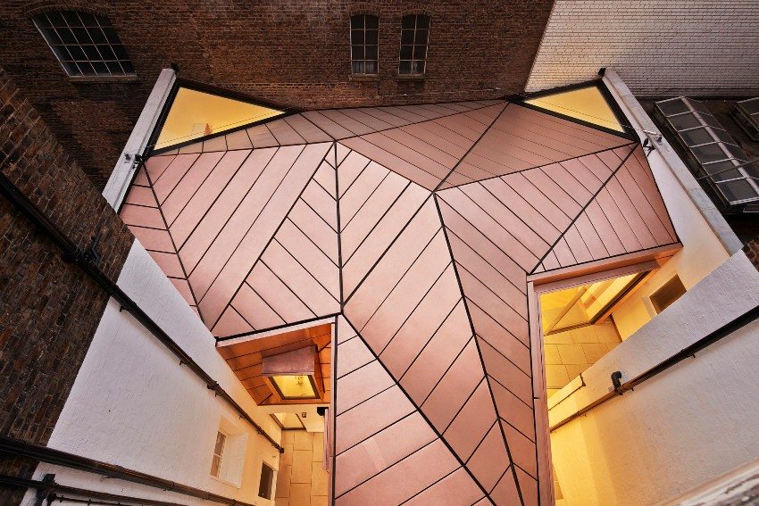 Copper sheet tiles have an exquisite and noble appearance. Over time, a plaque characteristic of this raw material forms on the surface of the material in the form of a greenish patina. But it does not reduce the decorative properties of the coating, but, on the contrary, emphasizes them.