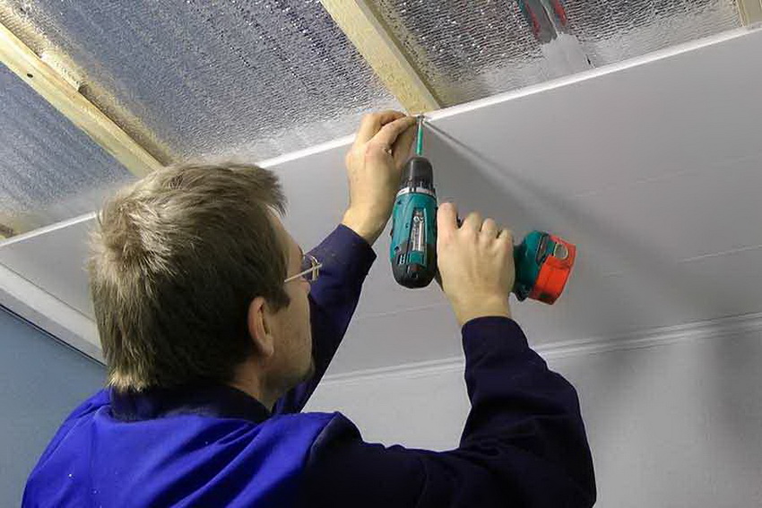 - stone wool can be purchased in the form of slabs that are easily cut into pieces of the required length and attached to the ceiling surface.