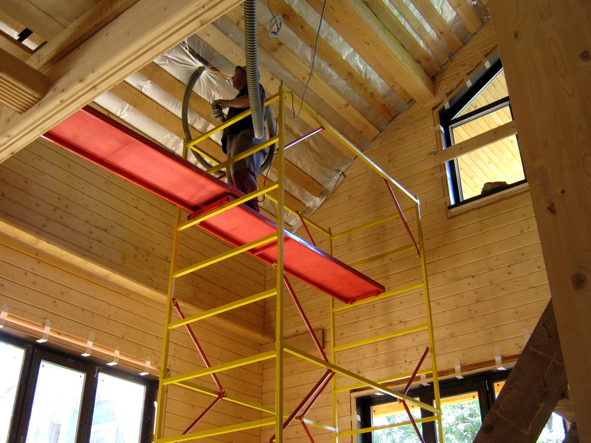 Ecowool is a pre-crushed material that is first blown into the cracks, and then, using the same method, a layer is placed between the ceiling and the rafters using a device specially designed for this. This is an expensive procedure, but it allows you to completely eliminate all risks of drafts and ensure the most effective insulation.