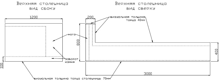 If the worktop is to be fixed directly to the wall, then reinforced mounting angles are ideal. They must be installed so that they are invisible, that is, a few centimeters from the edges.