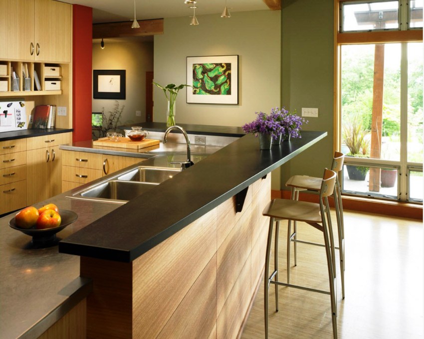 For countertops, as a rule, materials are taken that are different from those used in the manufacture of the frame. It is a separate and often independent element of a typical kitchen bar.