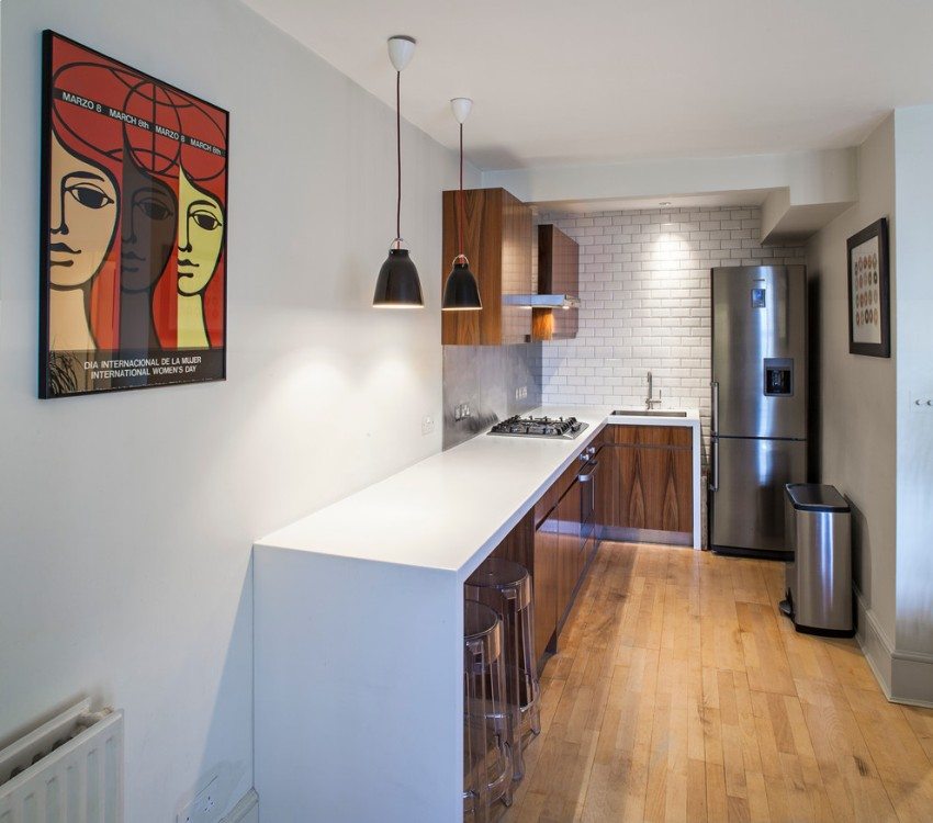 - The solution to the problem of lack of space is also a corner kitchen with a bar counter. A photo of such options shows how you can effectively equip a tiny room beautifully and tastefully;