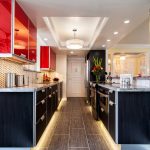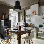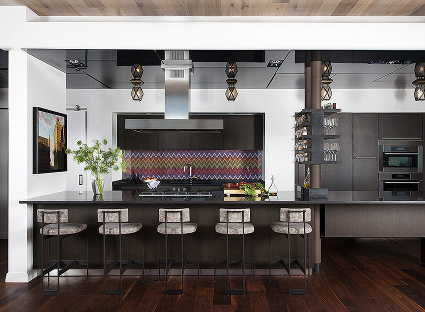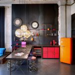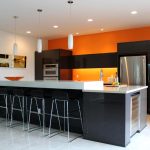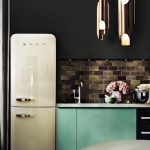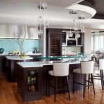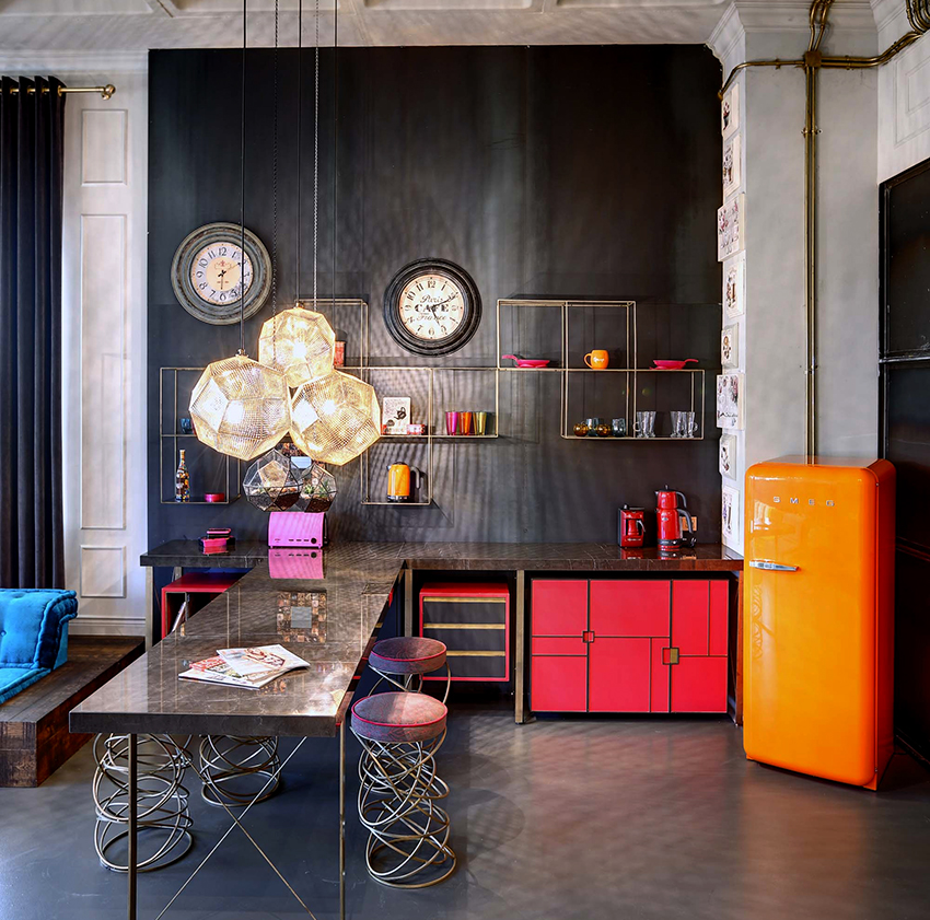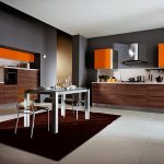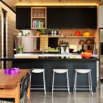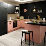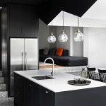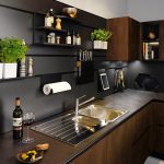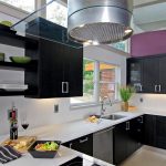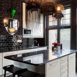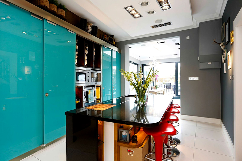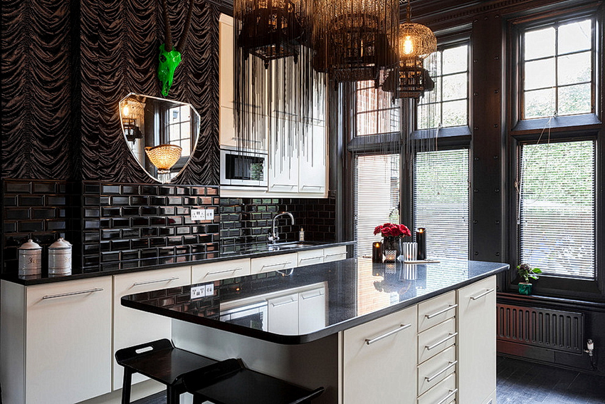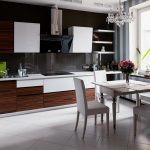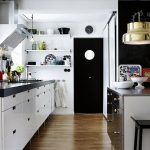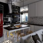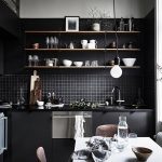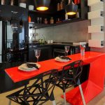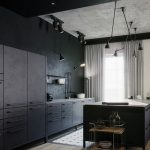 In any case, the main thing is not to overdo it, because against the black background all colors will look much brighter and richer. Therefore, it is not recommended to overload the laconic design with accessories and catchy colors. A few details in the form of a bright electric kettle, dishes or a chandelier will be enough.