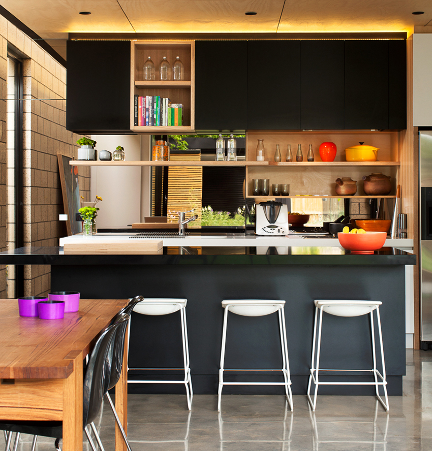 Kitchen with a black worktop: a versatile kitchen detail