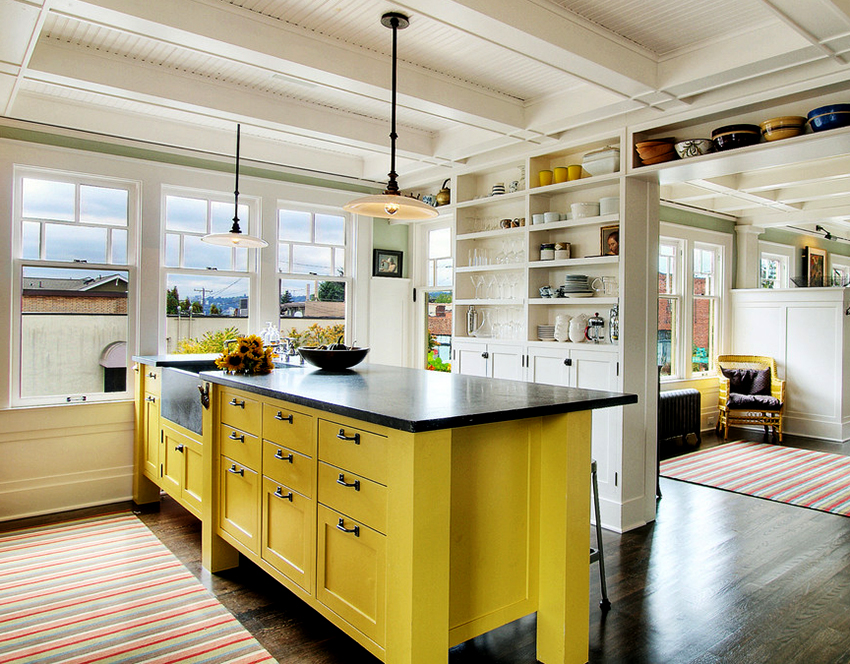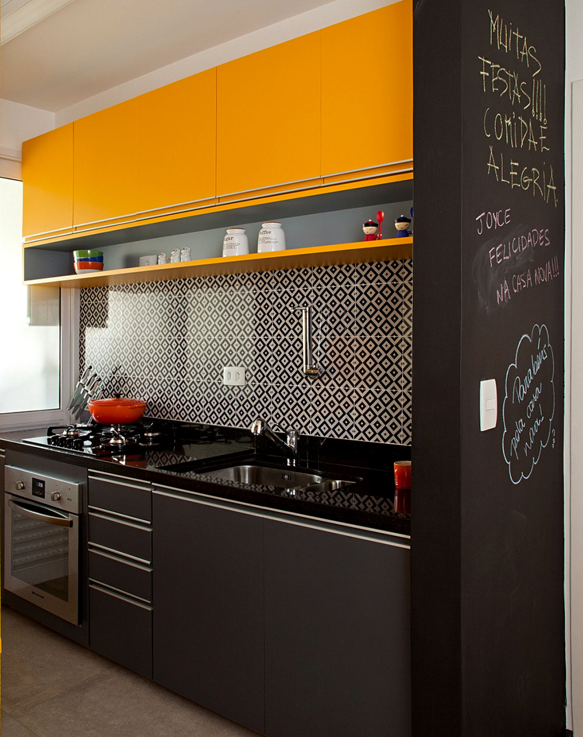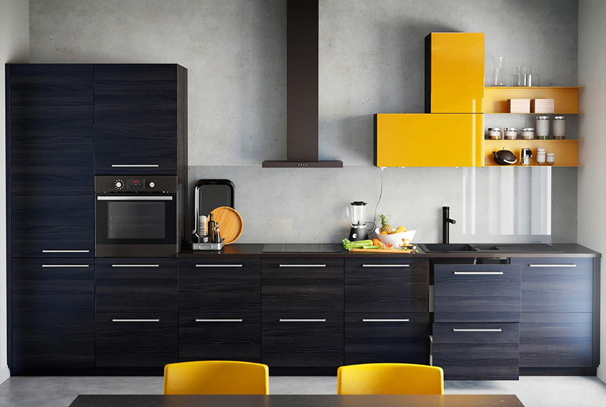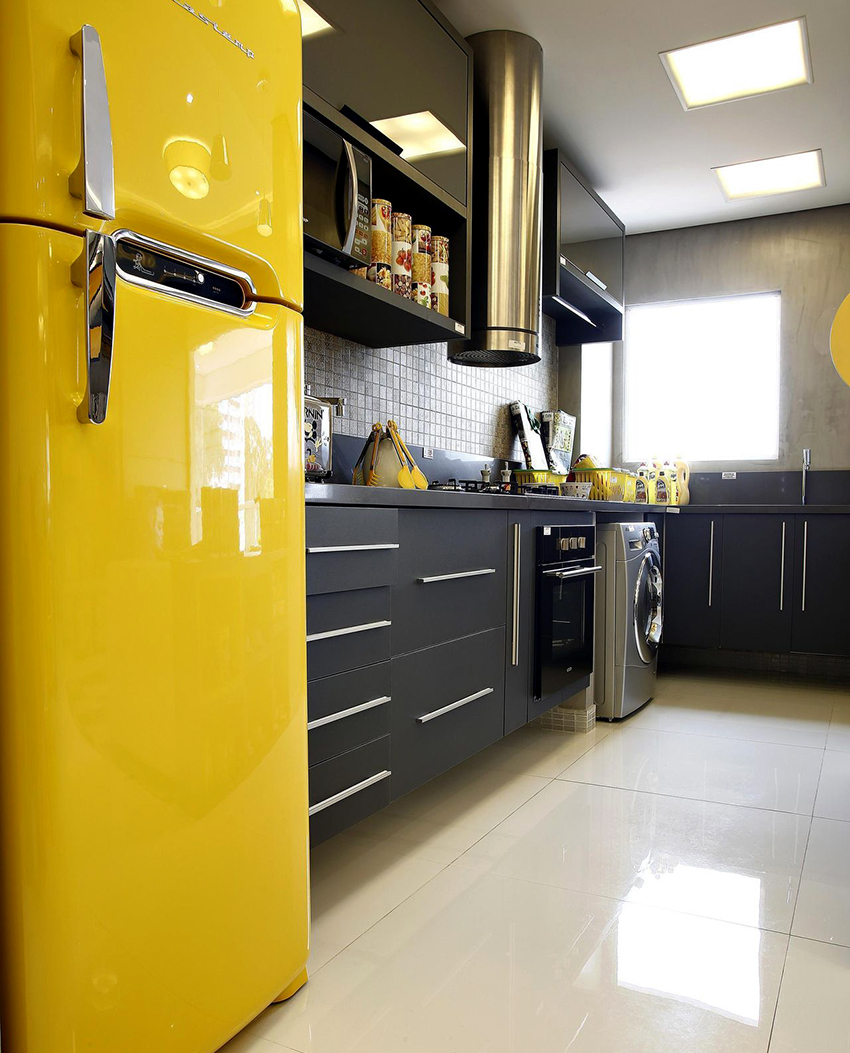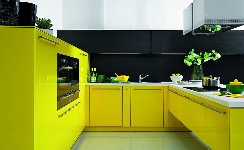 Black-yellow kitchen Is a combination of two rich and intense tones. Delicate and bright yellowness lends delicacy and creates an emotional contrast to deep blacks. Thus, an expressive and decisive kitchen interior, combining opposites, brings a cheerful touch and creates a sunny mood.