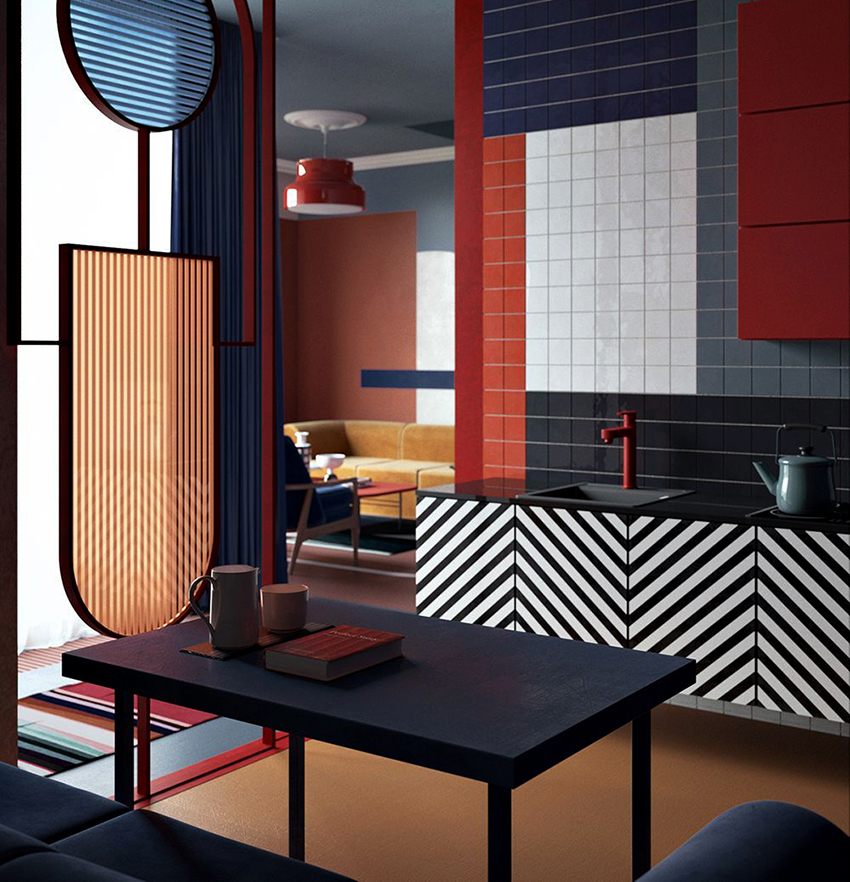 Useful advice! Matte glass, marble and mirror details will help soften the aggressive duo of red and black.