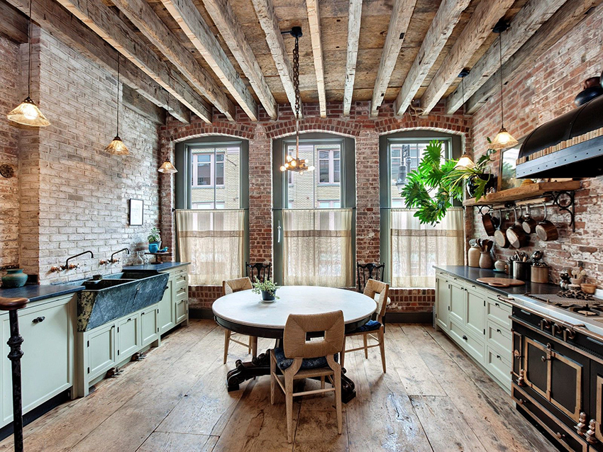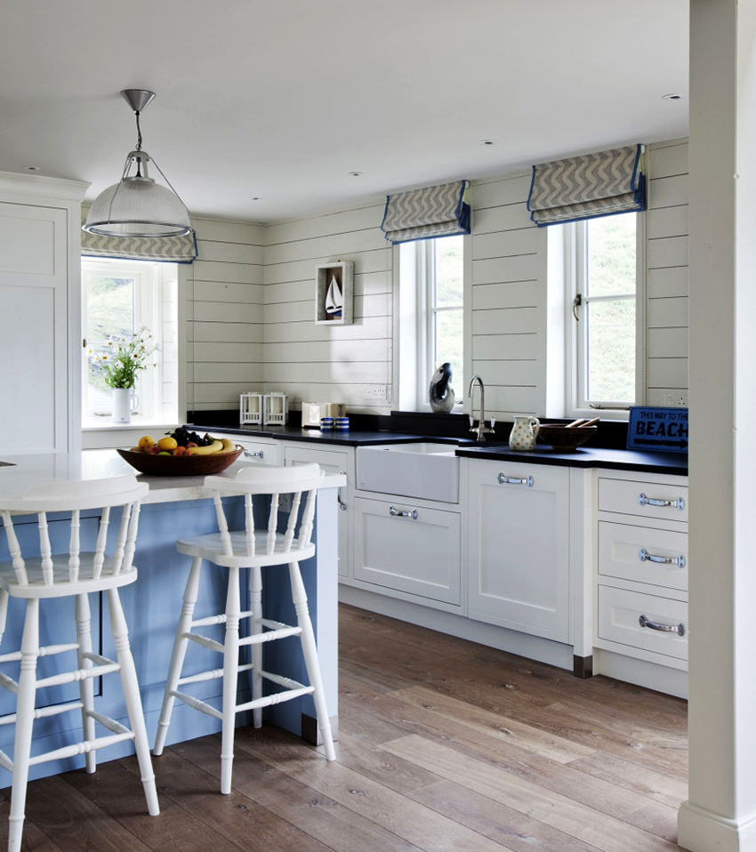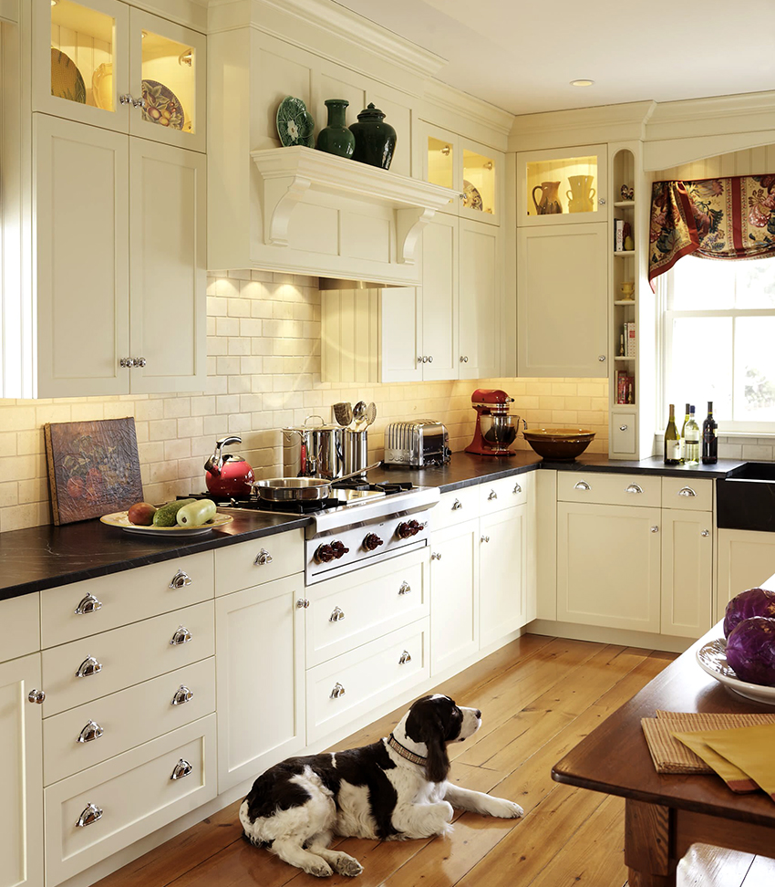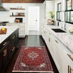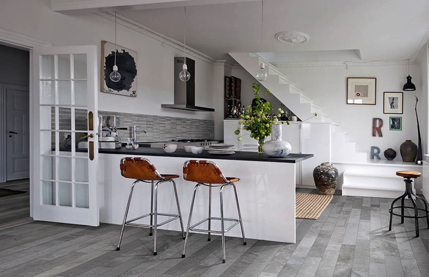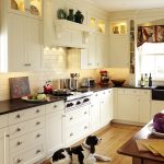 It is light colors that are best used in flooring. The union of black and white is the gold standard of the classic kitchen genre, which brings to the interior the borderline and dynamic features characteristic of the struggle of opposites. This combination suggests all kinds of combinations. A white set can be in harmony with a black floor, a table top and an apron - and vice versa. The kitchens look especially solemn with a white top and a black bottom with a checkerboard floor.