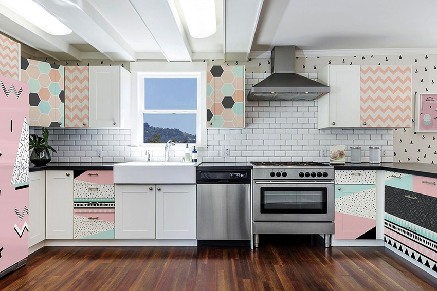 Black in the kitchen as a dominant or addition can go well with almost all colors. You can safely use such bright colors as green, orange, yellow, pink, lilac. The main thing is not to overdo it with brightness and avoid variegation. Therefore, a maximum of three colors should be present in the interior.