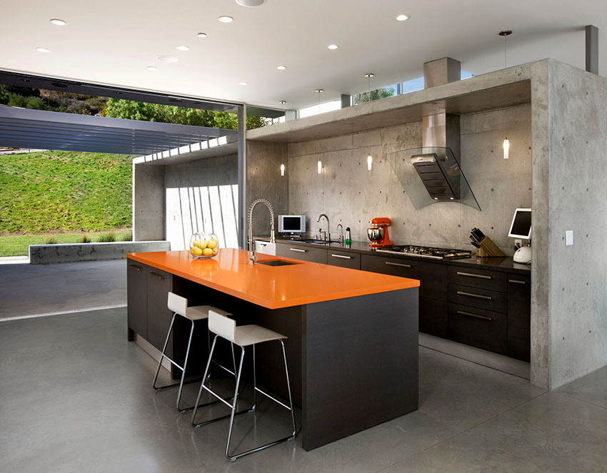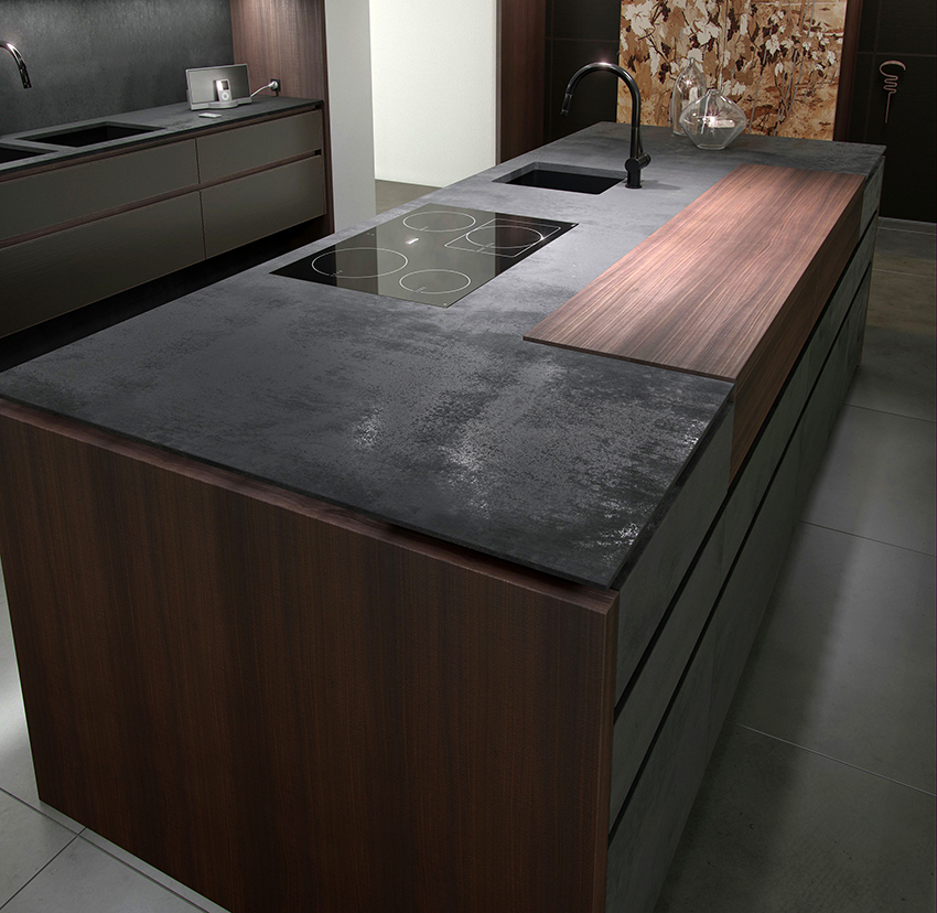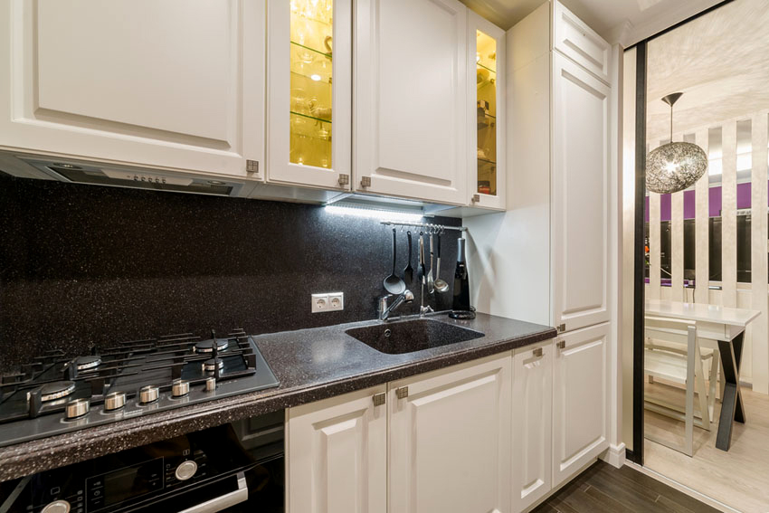 When choosing a black countertop, it is necessary to take into account that various contaminants are clearly visible on it, including dust particles, streaks, traces of drops, crumbs. In this case, not only color is important, but also the texture of the material, the presence of patterns and inclusions.