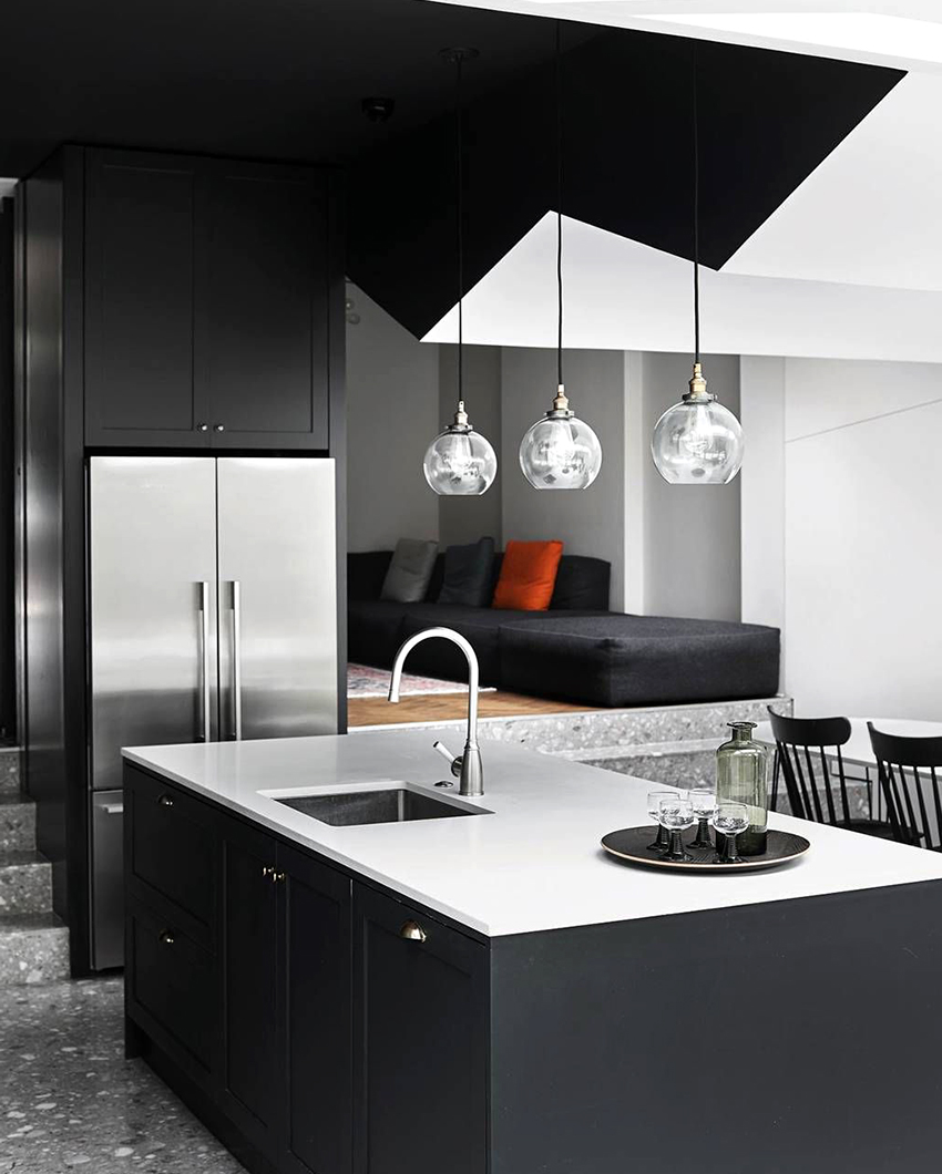To black kitchen looked sophisticated and concise, you need to adhere to the correct balance of colors