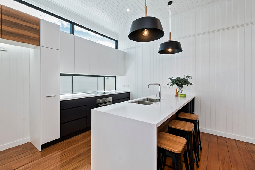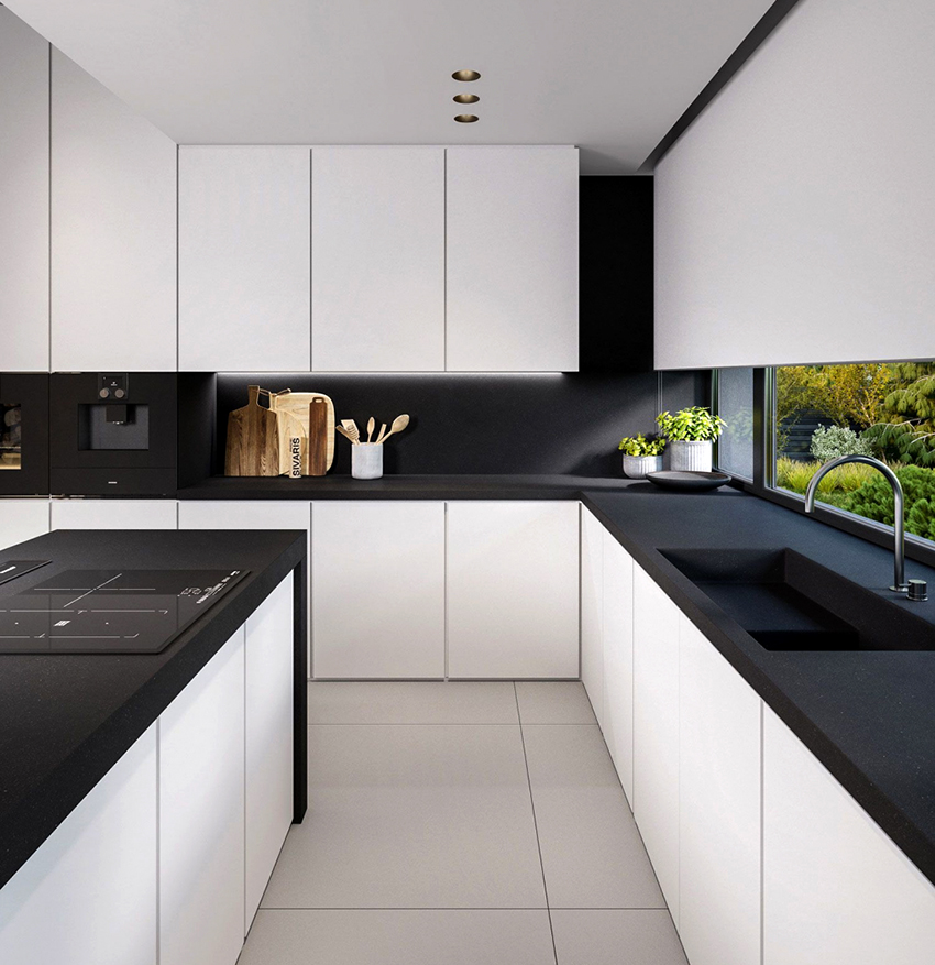 White kitchen with black worktop: the perfect combination of opposites